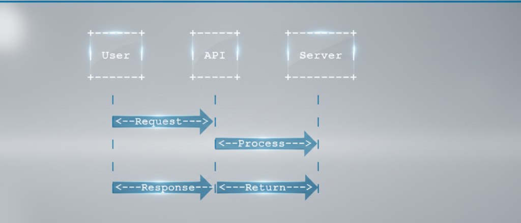 In the diagram above, User (which could be your app or program) sends a Request to the API. The API passes the request along to the Server (the behind-the-scenes system). The server then processes the request (maybe fetching data or doing a calculation) and sends a Response back to the API, which then returns it to the User. This loop shows how communication travels from the user to the system and back, all handled by the API in the middle.